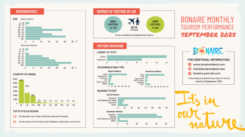 Tourism Corporation Bonaire (TCB) heeft voorlopige toerismegegevens voor september 2025 gedeeld. Hieruit blijkt dat Bonaire 12.196 verblijfsbezoekers heeft ontvangen. Dit is een stijging van 13,1% ten opzichte van september 2024, toen er 10.779 bezoekers arriveerden.