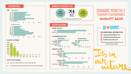 Bonaire heeft 14.435 verblijfsbezoekers verwelkomd in augustus 2025