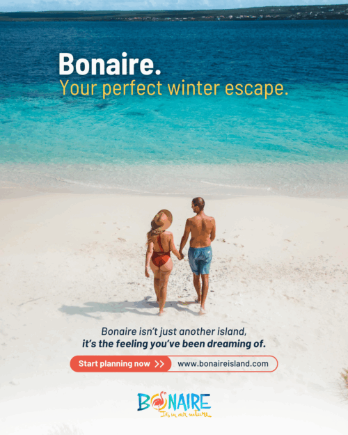 Tourism Corporation Bonaire (TCB) has launched the “Bonaire Winter Escape Campaign,” a digital marketing initiative aimed at attracting travelers from colder regions to trade their cold, gray winters for Bonaire’s year-round warm climate, turquoise waters, and peaceful island charm during the winter months.